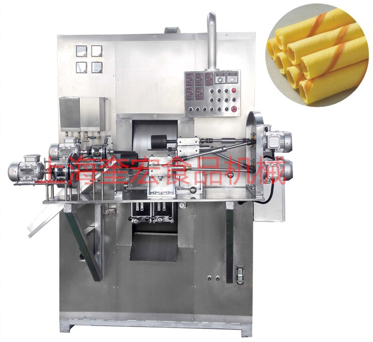 面料打漿機(jī)可輕松攪拌面漿,具有面漿均勻、攪拌時(shí)間短的優(yōu)點(diǎn),再經(jīng)過送漿機(jī)傳送至主機(jī)烘焙。烘焙工藝采用氣體加熱,爐灶點(diǎn)火裝置為電磁閥自動引火,靈敏度高,操作簡便。烘焙輪轂可調(diào)節(jié)輪轉(zhuǎn)速度,并由自控溫度探測儀進(jìn)行溫度控制,輪轂溫度過高或過低時(shí)可自動調(diào)節(jié),保持恒溫狀態(tài),能有效避免能源氣體浪費(fèi)。灌芯芯棒及卷成型裝置使用變頻控制器電機(jī),可調(diào)整速度。芯料經(jīng)球磨打料,經(jīng)灌芯機(jī)自動注入面皮,通過卷成型繞城棒狀,送至自動切刀裝置切棒。蛋卷厚度直徑,可通過芯棒軸上下調(diào)節(jié)改變。